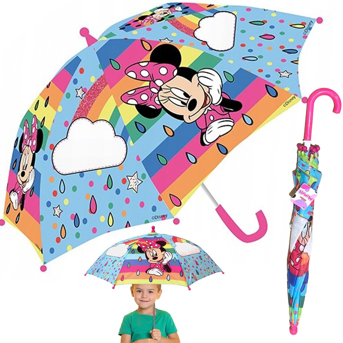 Bērnu lietussargs ar Minnie Mouse motīvu ir lielisks aksesuārs pastaigām. Izgatavots no izturīgiem materiāliem, tas nodrošina efektīvu aizsardzību pret sauli un lietu. Dizains iemīļoto multfilmas varoni būs stimuls ikvienam mazajam. Lietussargs viegls viegli salokāms, tāpēc to uzglabāt paņemt līdzi ceļojumā.