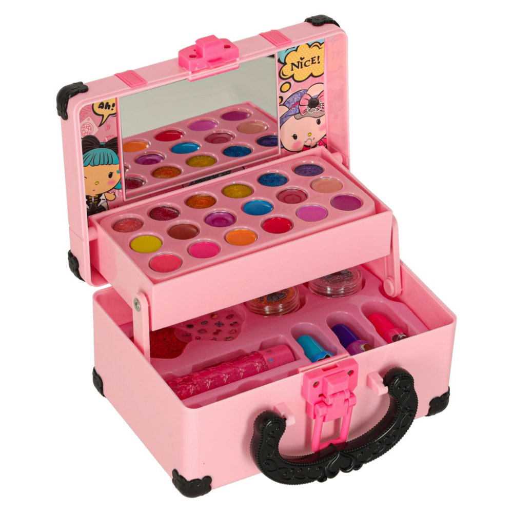 Šis elegantais kosmētikas koferis ir pilnīgs skaistumkopšanas komplekts, kas radīts drošai un radošai bērnu spēlei. Tas ļauj mazajām princesēm atklāt grima un nagu dizaina pasauli, izmantojot vecumam atbilstošus, viegli nomazgājamus produktus.