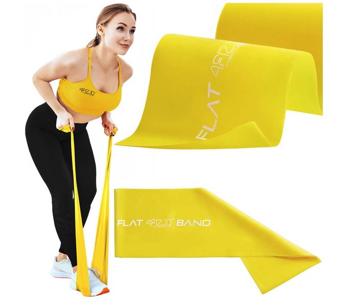 4Fizjo FLAT BAND Vingrošanas Pretestības Fitnesa Gumija Lente Josta Treniņiem 2m x 15cm, Dzeltens | Flexible Rubber Training Fitness Tape