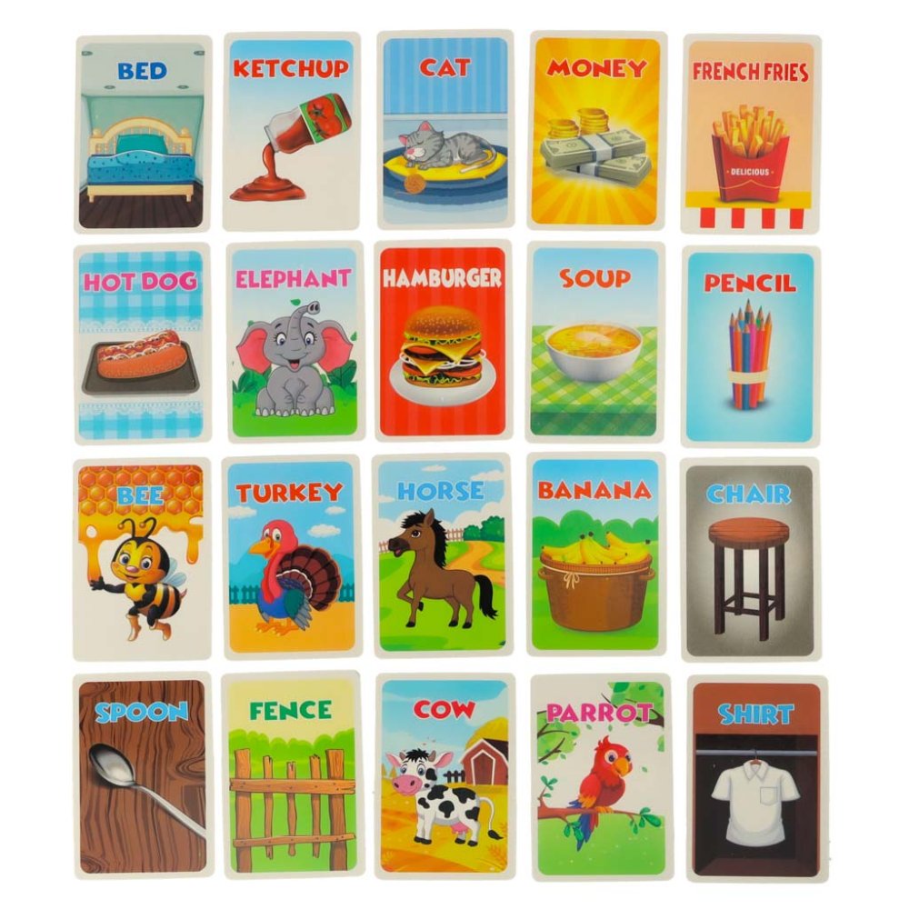 • Angļu valodas apguve: Komplektā iekļautas kartītes ar parakstiem angļu valodā, kas ir lielisks veids, kā jautrā veidā apgūt jaunus vārdus un uzlabot valodu prasmes.