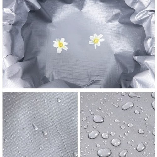 Pateicoties īpašajam LDPE pārklājumam, plandeka ir pilnībā ūdensnecaurlaidīga. Tā efektīvi pasargā no lietus, sniega un mitruma, padarot to par ideālu risinājumu jebkuros laika apstākļos. Uz plandekas ir 14 nerūsējošā tērauda cilpas (12 mm diametrā), kas izvietotas ik pēc 90 cm, ļaujot to viegli un droši nostiprināt.