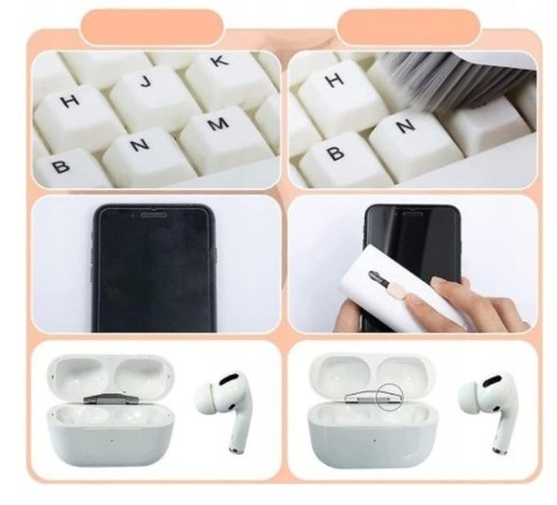 Uzturiet savu elektroniku nevainojami tīru ar T-Phox 7-in-1 tīrīšanas komplektu. Ideāli piemērots tastatūrām, austiņām, piemēram, Airpods, un citām ierīcēm.