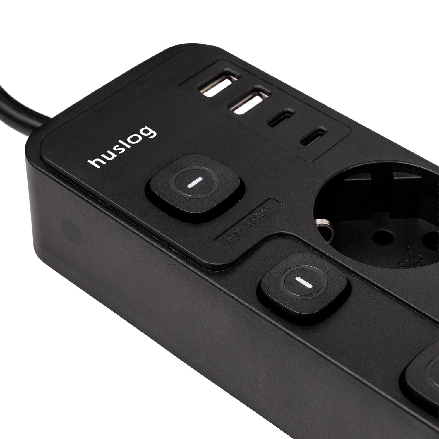Pateicoties kompaktajiem izmēriem (255 × 74 × 40 mm) un 1,5 metru garam kabelim, Huslog pagarinātāju var ērti novietot uz rakstāmgalda, pie televizora vai darbnīcā. Tā elegantais melnais dizains lieliski iederēsies jebkurā interjerā.