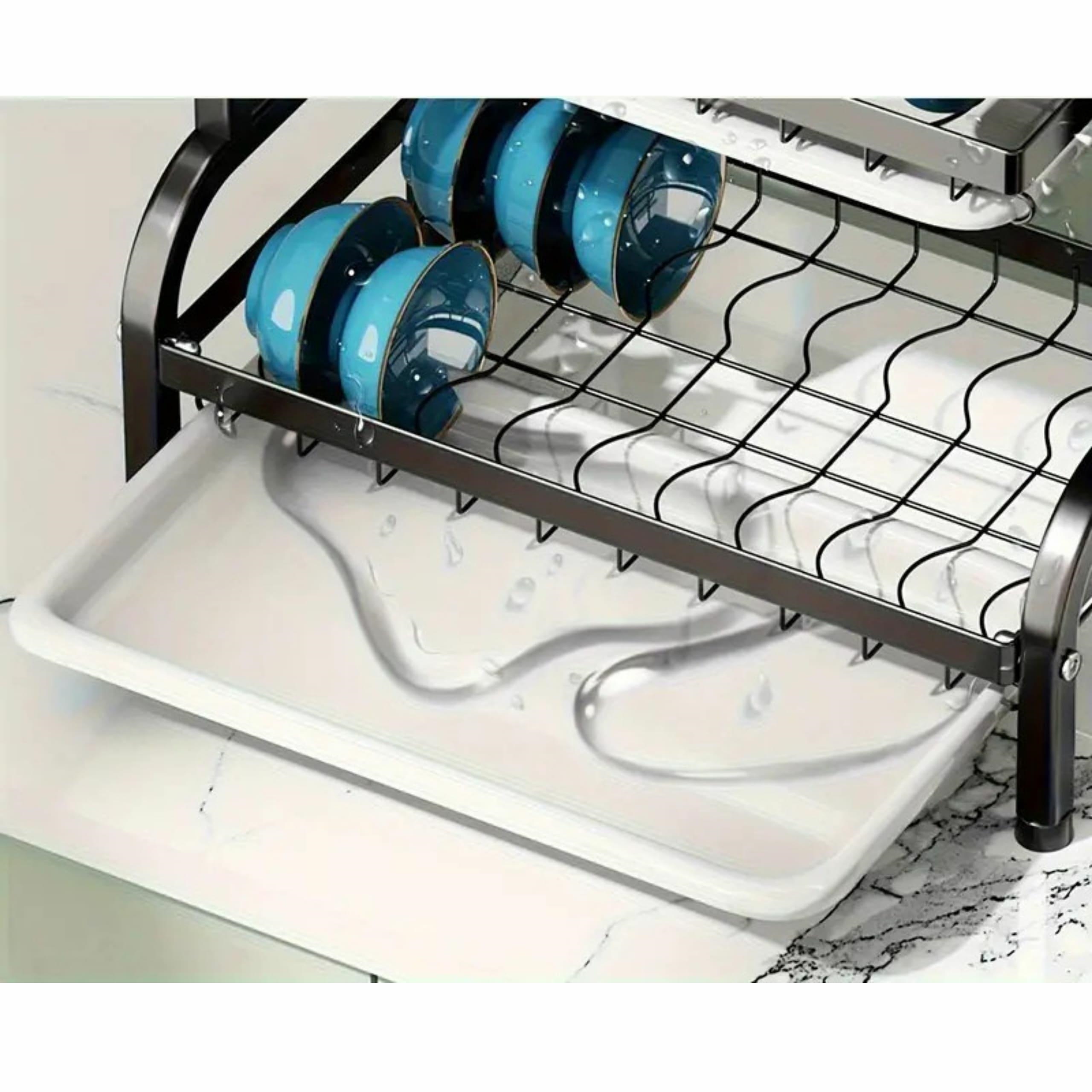 - Vietas ekonomija: Divu līmeņu dizains (41 × 55 × 25 cm) ļauj novietot vairāk trauku, neaizņemot daudz vietas.