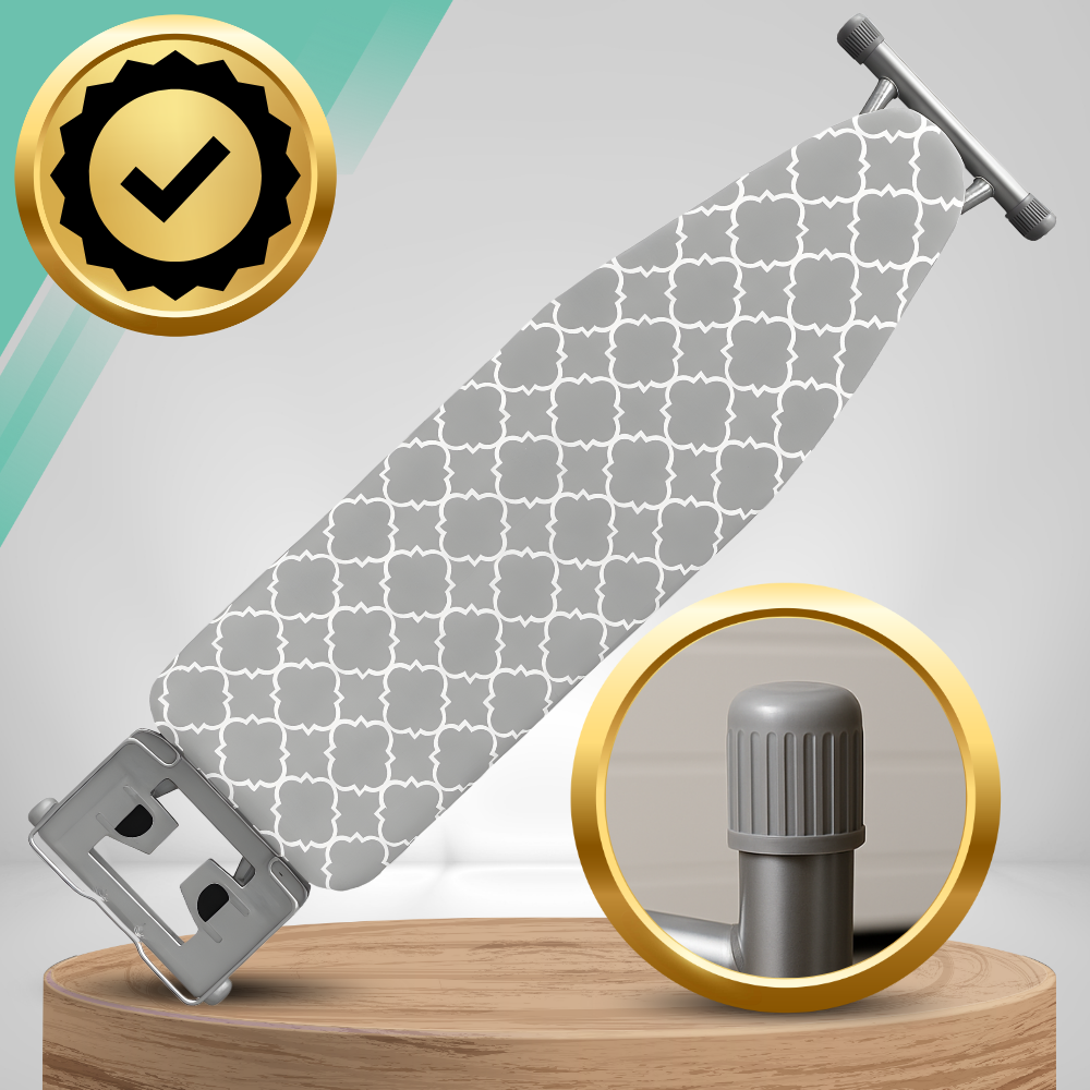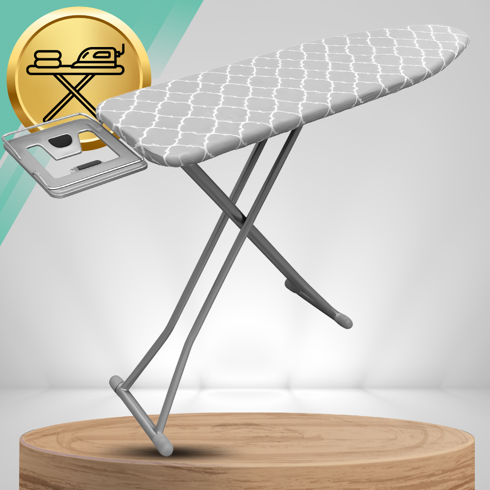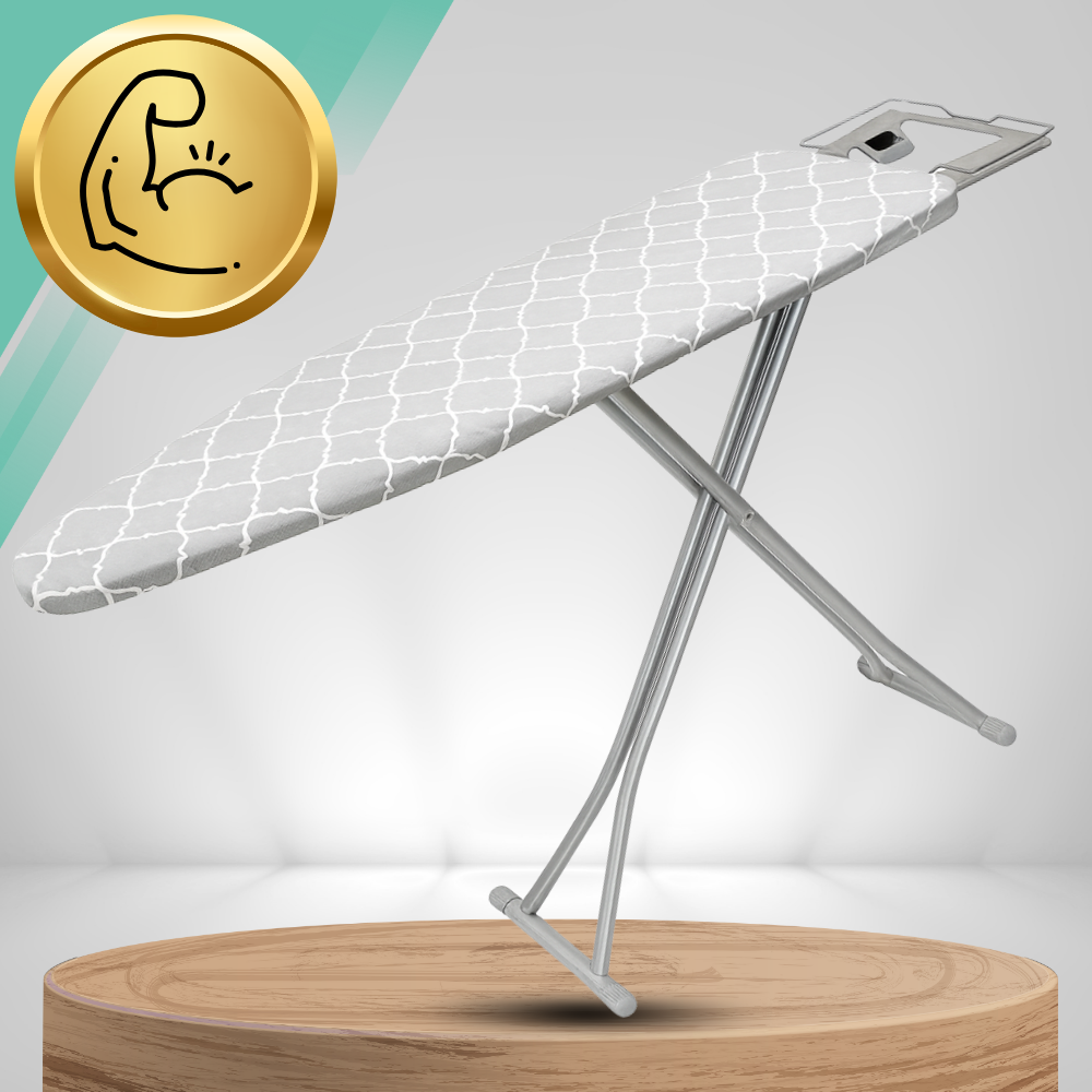 Atklājiet gludināšanas komfortu ar mūsu Premium gludināmo dēli. Tā stabilā konstrukcija, regulējamais augstums un praktiskais gludekļa turētājs padara to par ideālu palīgu.