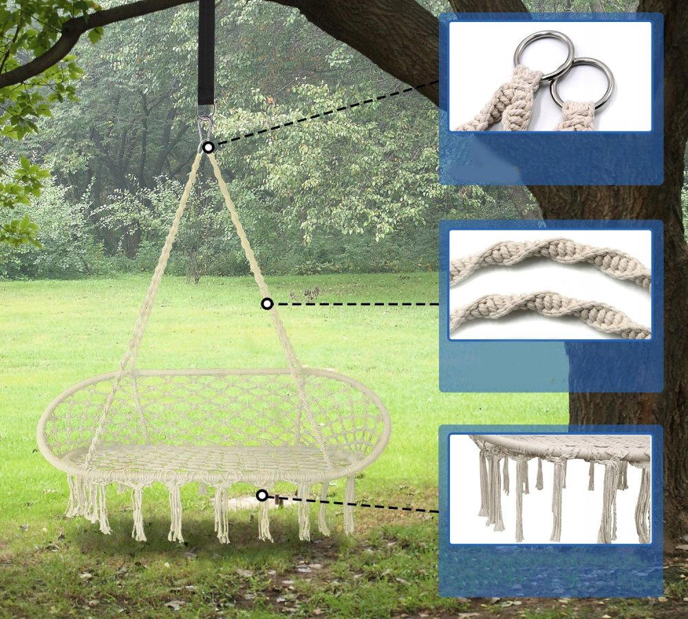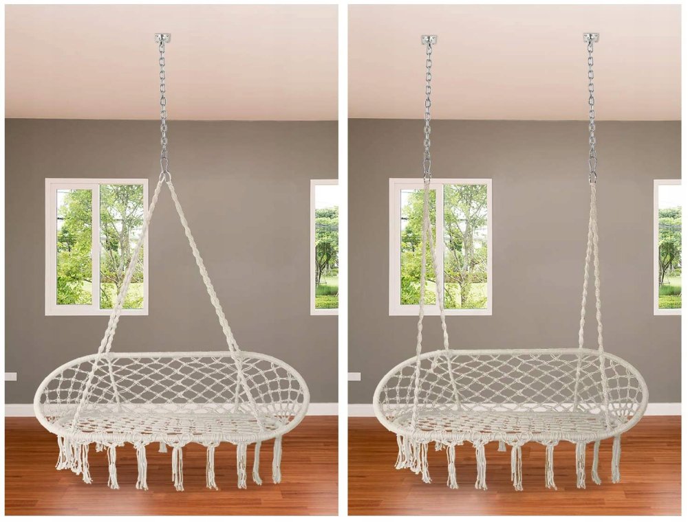 Divvietīgas šūpoles, lieliski piemērotas dārzam, terasei vai balkonam. Tam ir 2 piekares punkti ar metāla riteņiem. Šūpoles ir izgatavotas no stipras virves un metāla gredzeniem.