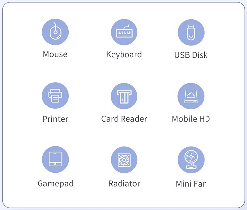 Funkcijas: Piemērots lielākajai daļai interfeisa ierīču. Četras pieslēgvietas var darboties vienlaicīgi neatkarīgi viena no otras. Ātra datu apstrāde. Atbalsta SSD lasīšanu ietilpību līdz 1 TB. Atbalsta stabilu Bluetooth savienojumu dažādām ierīcēm. Stilīgs, viegls kompakts, viegli pārnēsājams. Atbalsta dažādas ierīces: peli, tastatūru, zibatmiņas disku, printeri, karšu lasītāju, portatīvo cieto plakano paneli, radiatoru, nelielu ventilatoru. Neieslēdziet jaudīgām ierīcēm, izstrādājums neatbalsta uzlādi.