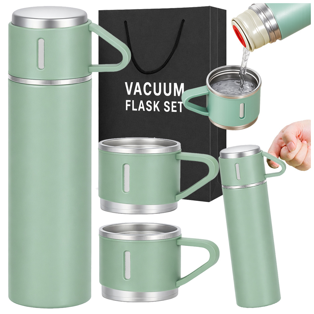 Šis termosa komplekts ir ļoti praktisks ikdienas lietošanai un kalpo kā lieliska dāvana draugiem, ģimenei vai kolēģiem. Tas viegli ietilpst mugursomā, nodrošinot, ka jums vienmēr ir pa rokai silts dzēriens, ar kuru padalīties, izmantojot trīs komplektā iekļautās krūzītes.