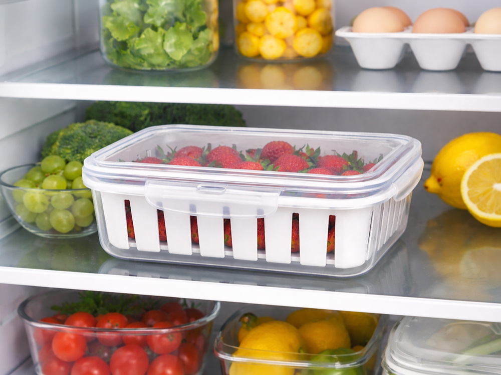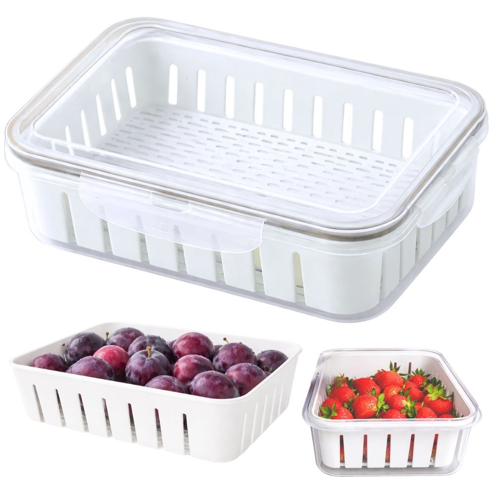 Saglabājiet augļus un dārzeņus svaigus ilgāk ar mūsu augstākās kvalitātes ledusskapja organizatoru. Šis daudzpusīgais pārtikas uzglabāšanas trauks ar izņemamu sietiņu ir neaizstājams palīgs ikvienā virtuvē.