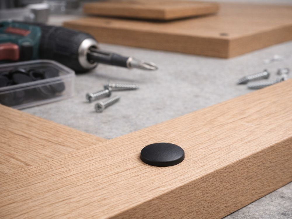 Šie melnie skrūvju vāciņi ir praktisks un elegants risinājums, lai nomaskētu redzamas skrūvju un stiprinājumu galviņas. Tie ne tikai uzlabo mēbeļu estētiku, bet arī aizsargā skrūves no putekļiem, mitruma un korozijas, pagarinot to kalpošanas laiku.