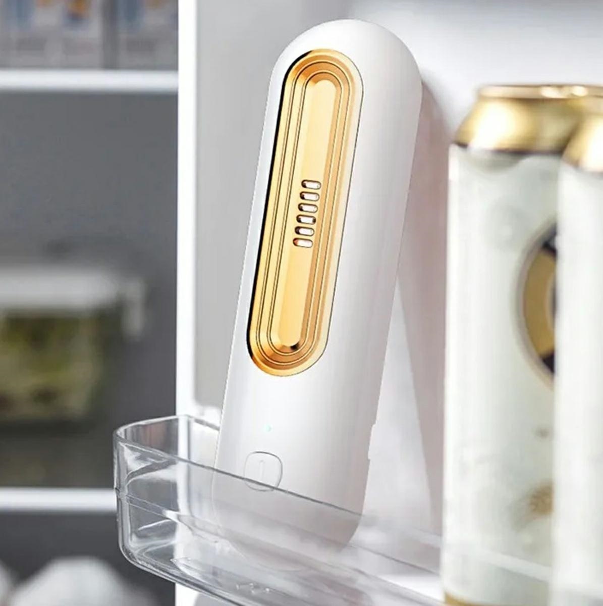 Kompakts ozonators palīdz uzturēt svaigu gaisu ledusskapī un citās slēgtās telpās. Ierīce ar jonu tehnoloģiju efektīvi likvidē nepatīkamas smakas, nodrošinot tīrāku un patīkamāku vidi.