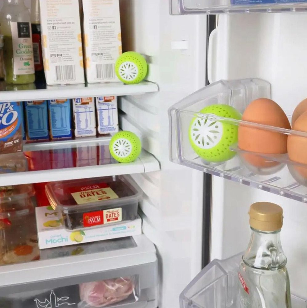 Praktiski smaku absorbētāji palīdz uzturēt ledusskapi svaigu un tīru. Komplekts ar 3 bumbiņām efektīvi samazina mitrumu un novērš baktēriju veidošanos, tādējādi paildzinot pārtikas produktu svaigumu.